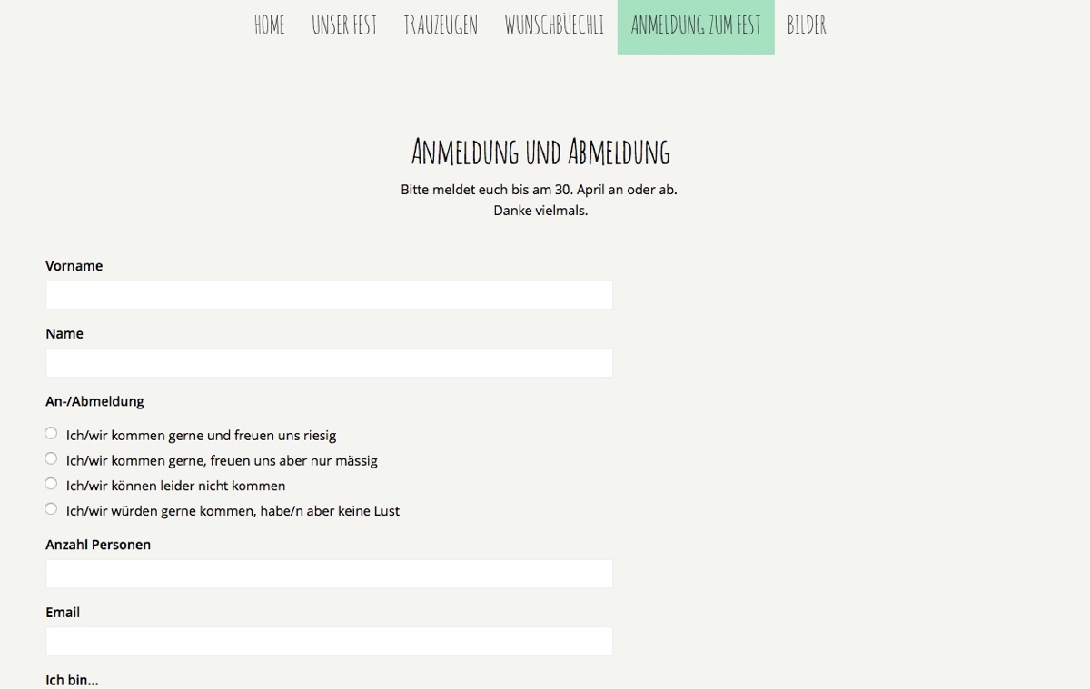 Eure Gäste können sich über ein Formular für euer Fest anmelden. Das Formular kann individuell angepasst werden.